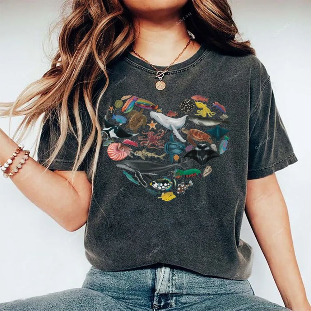 Unisex Marine Life Printed Washed Tee