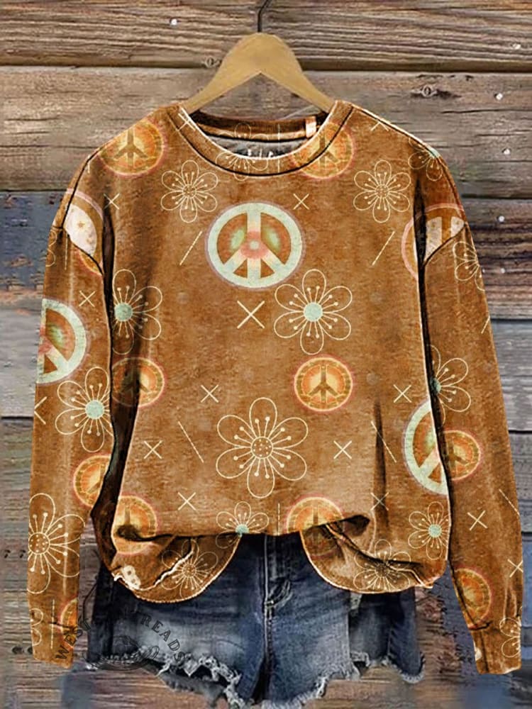 Vintage Love and Peace Art Print Casual Sweatshirt