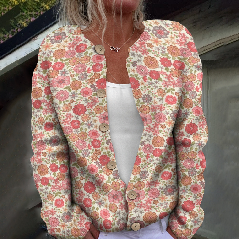 Women's Flower Printed Casual Cardigan Sweater