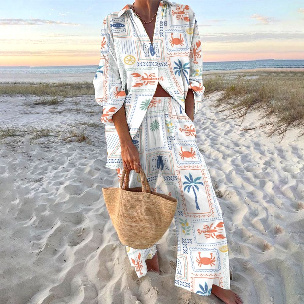 Women's Sardine Lobster Printed Shirt & Pants Two-piece Set