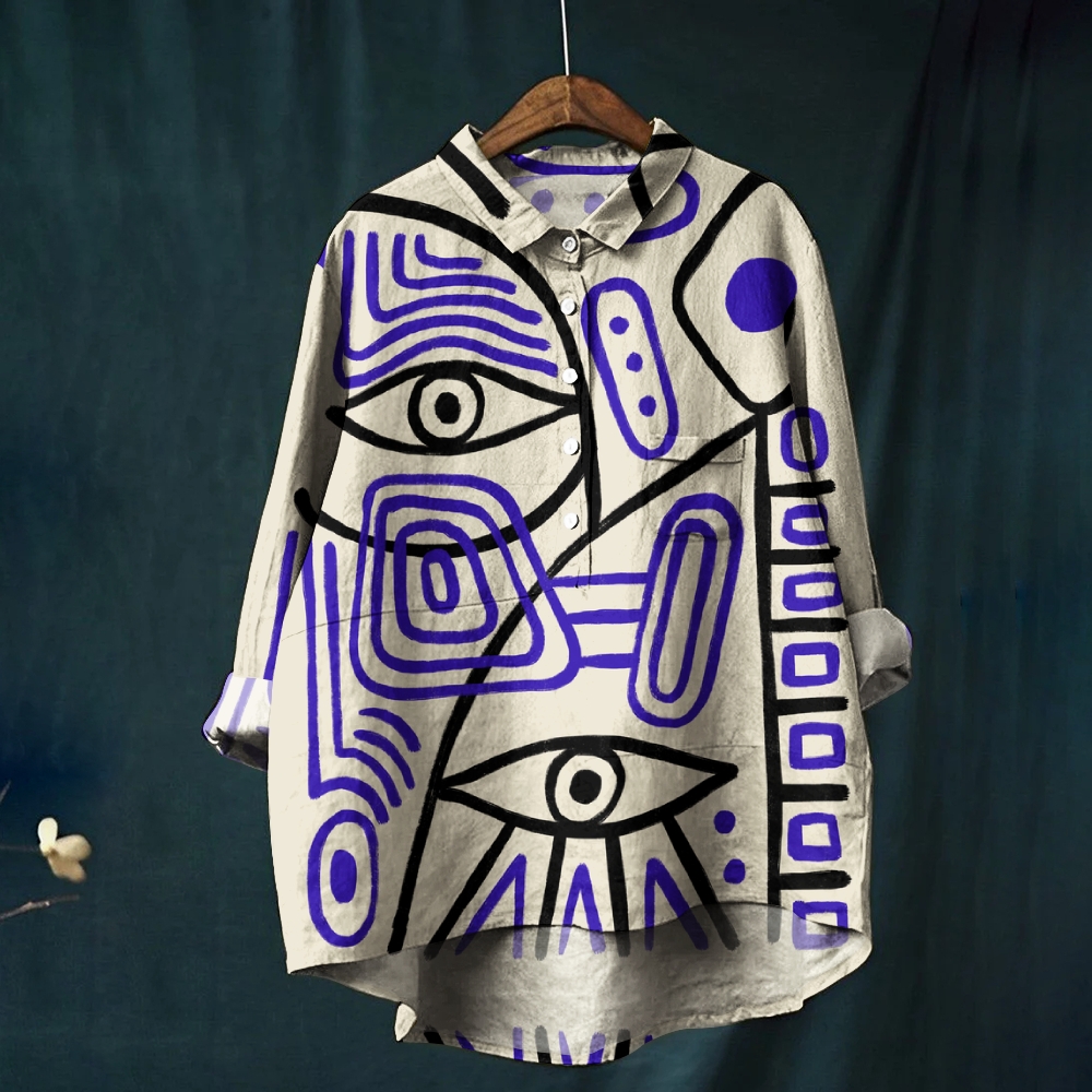 Women's Simple Strokes Of Fish Printed Casual Long Sleeve Shirt
