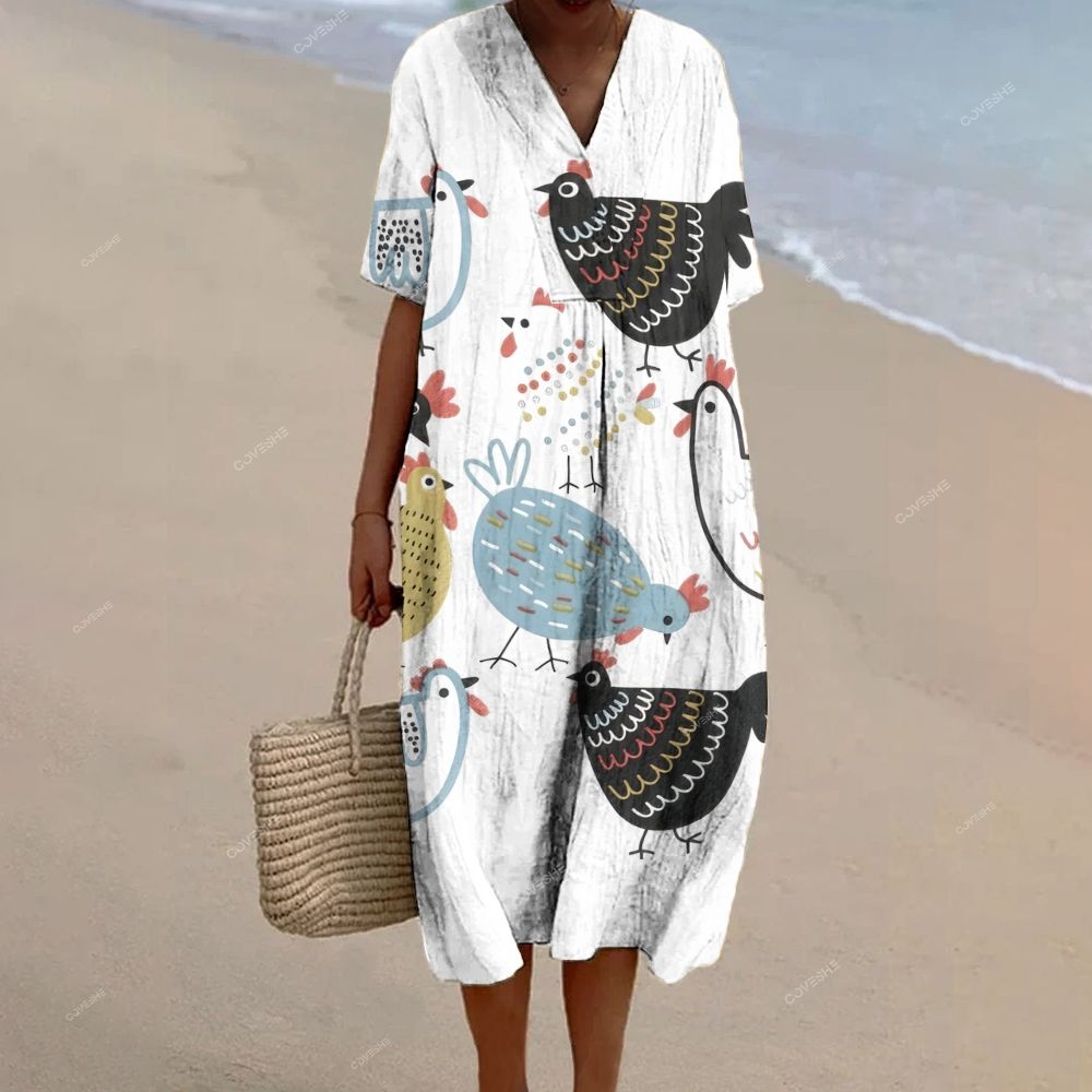 Women's Cartoon Art Chicken Printed Flowy Dress
