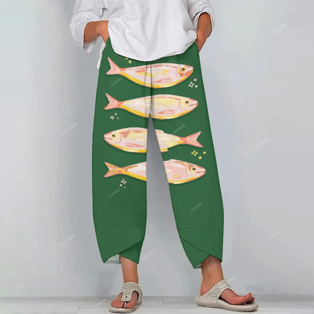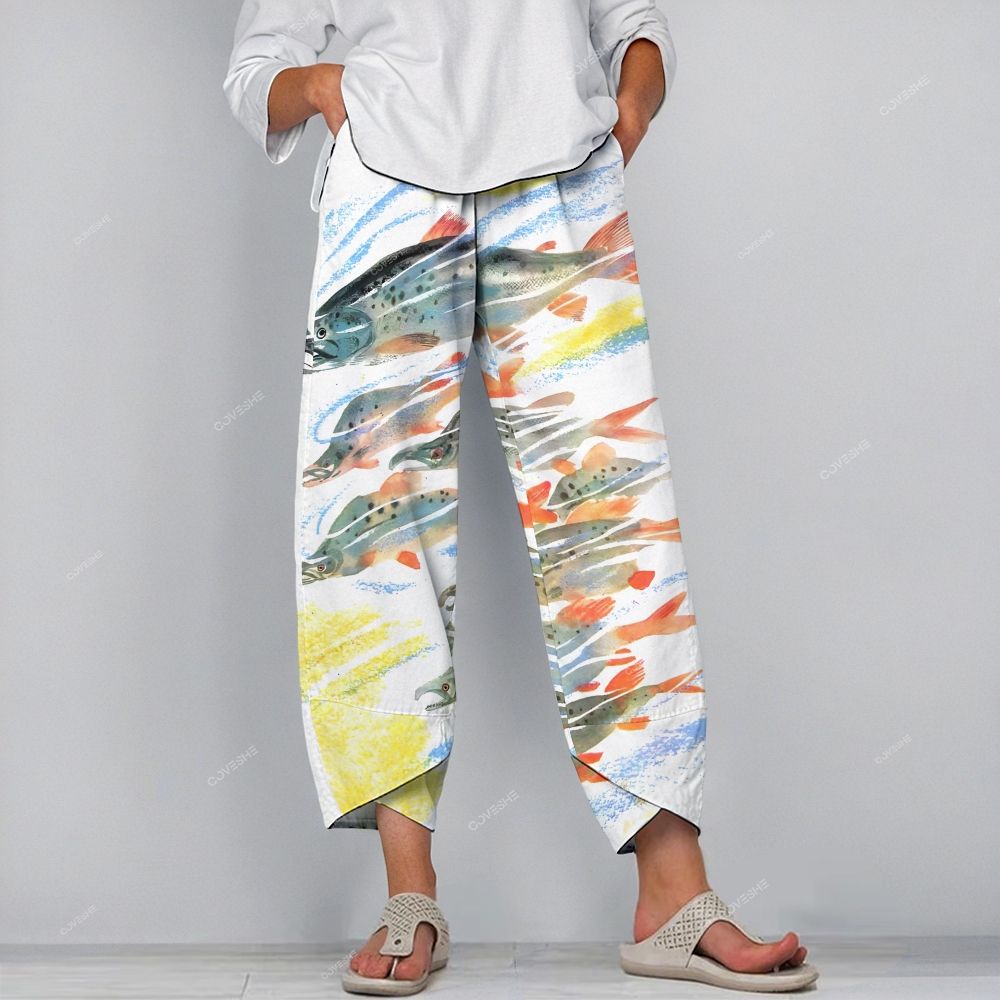 Women's Casual Cartoon Colorful Fish Printed Pants