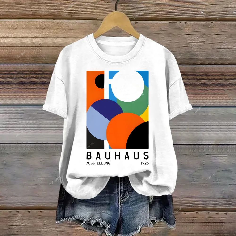 Crew Neck Artistic Geometric Printed Casual Cotton T-shirt