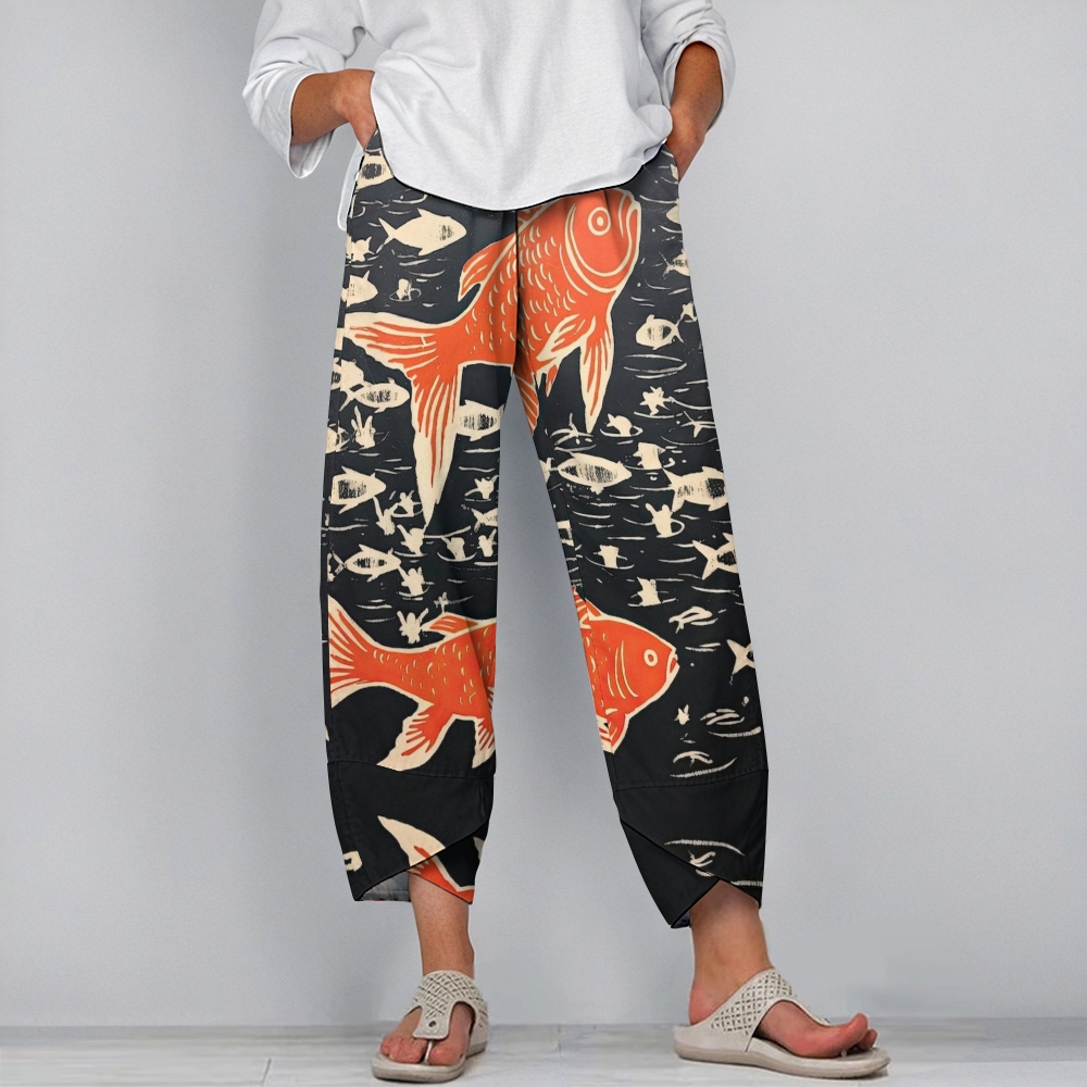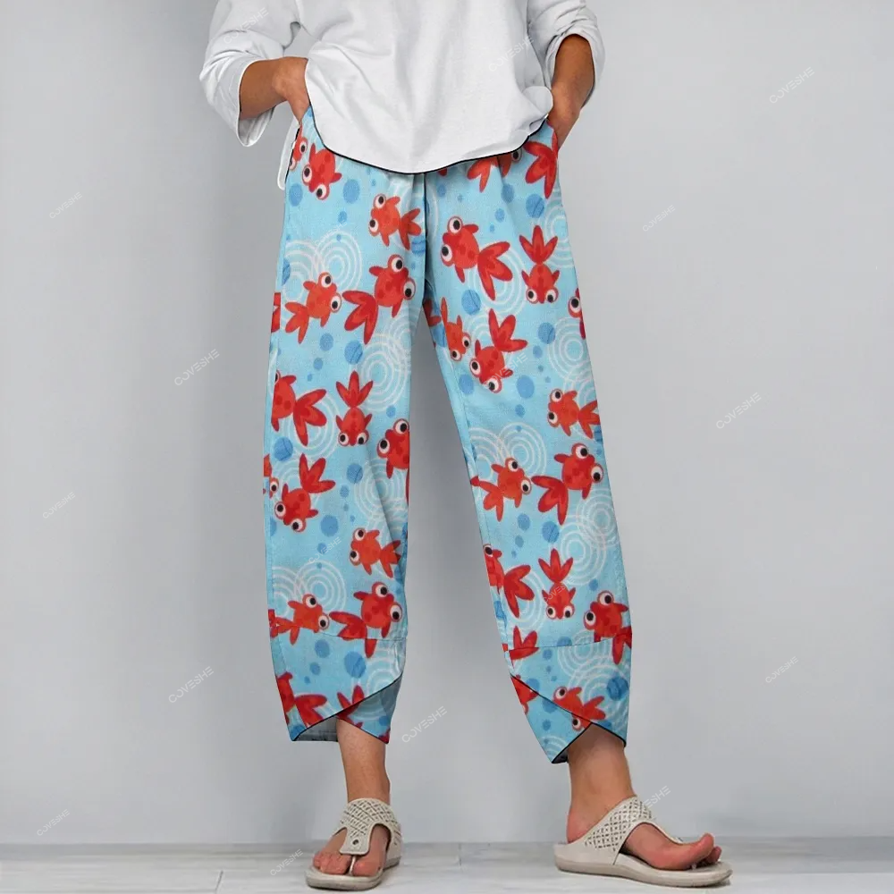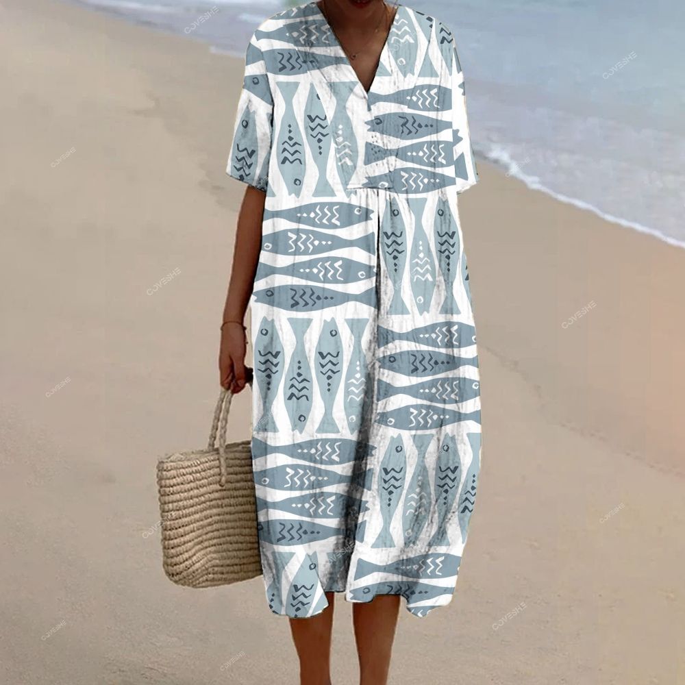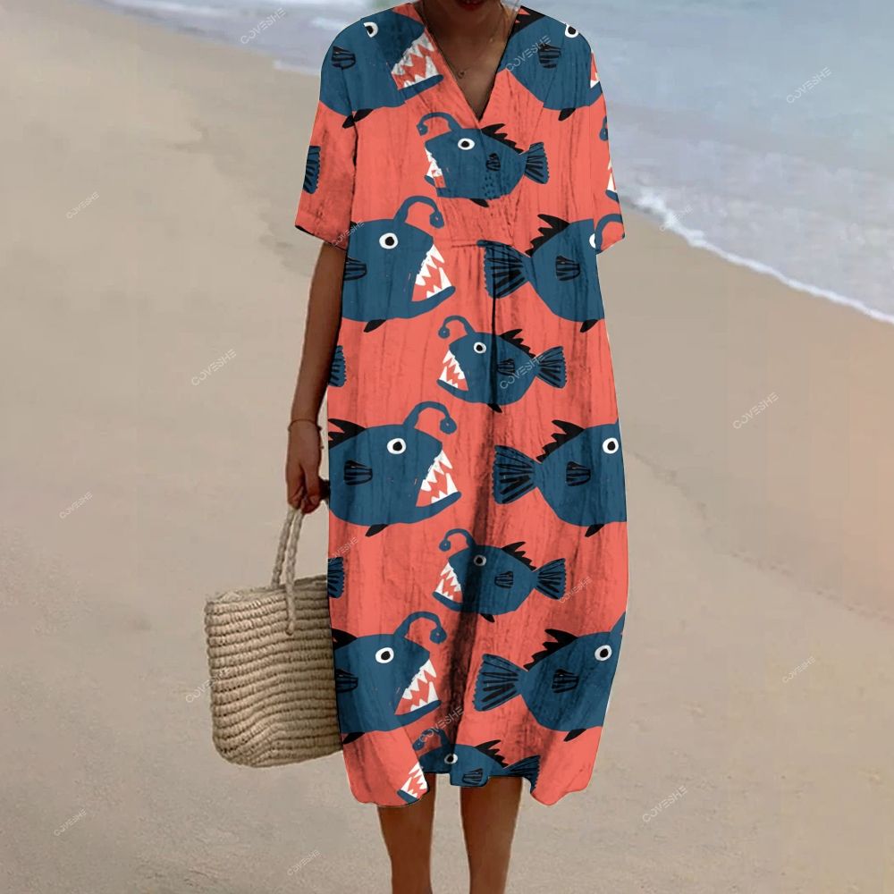 Women's Cartoon Colorful Art Fish Printed Flowy Dress