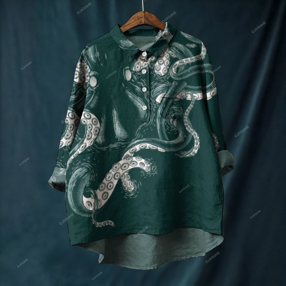 Women's Octopus Printed Casual Long Sleeve Shirt