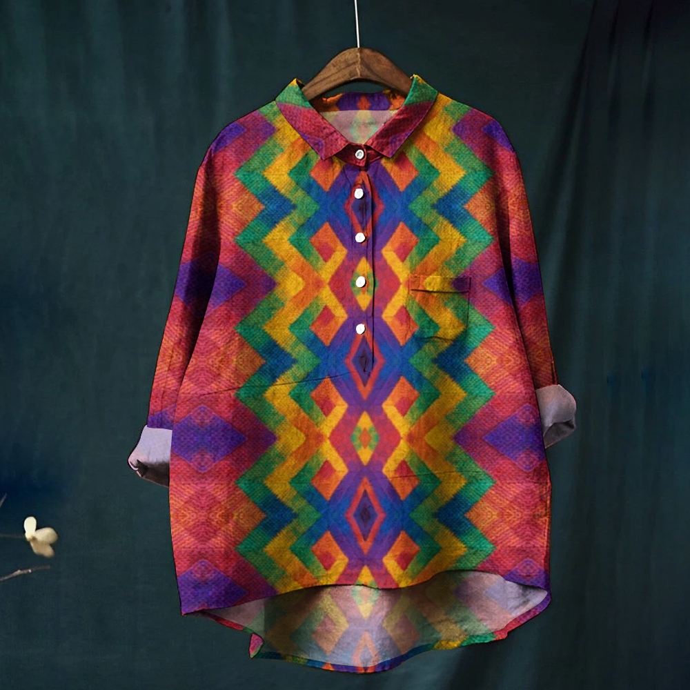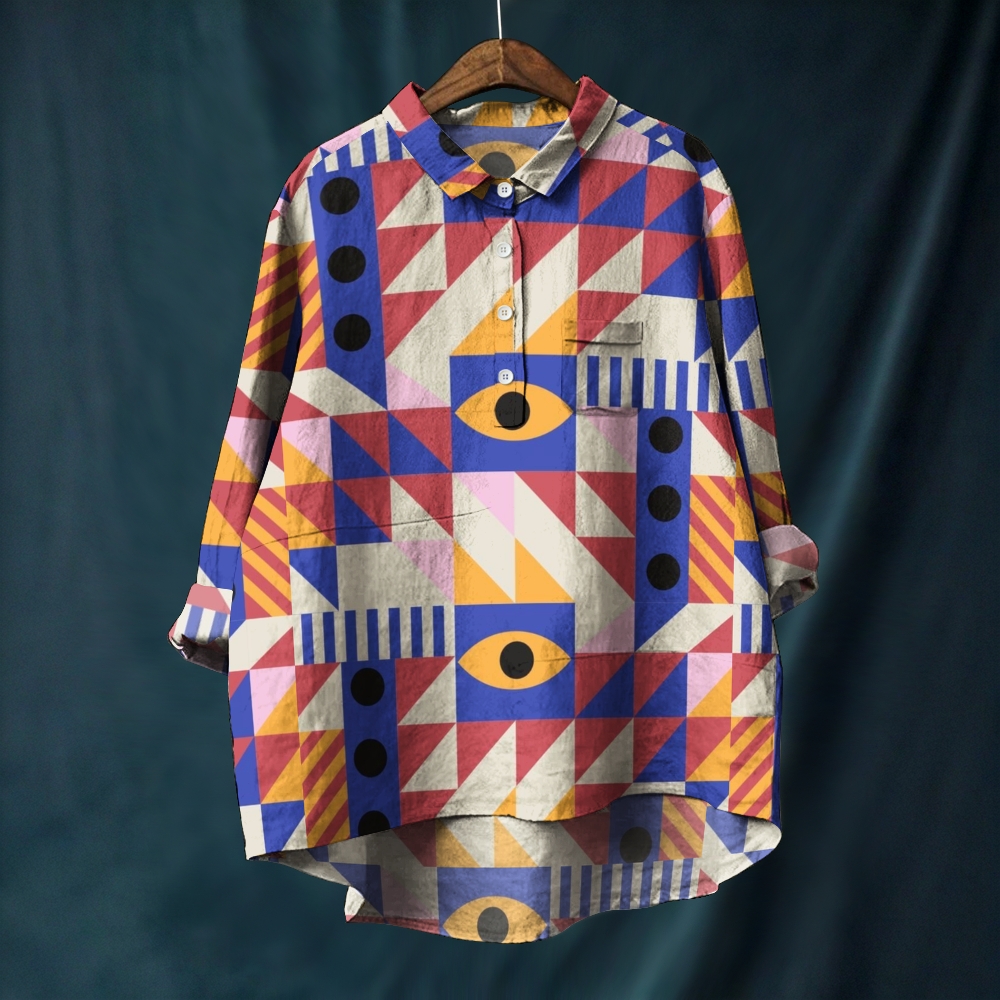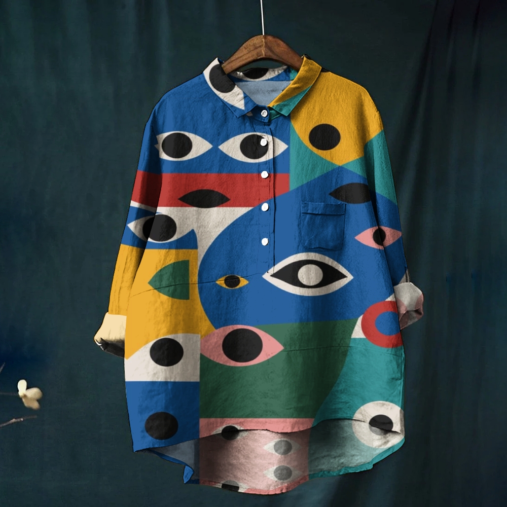 Women's Geometric Eyes Printed Casual Long Sleeve Shirt
