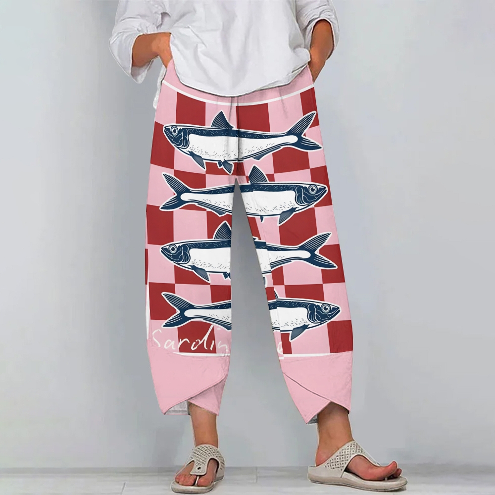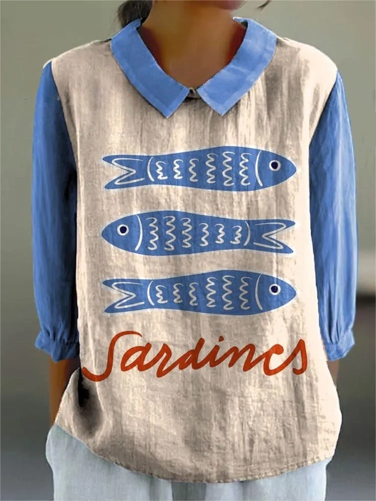 Women's Simple Sardines Art Print Casual 3/4 Sleeve Shirt