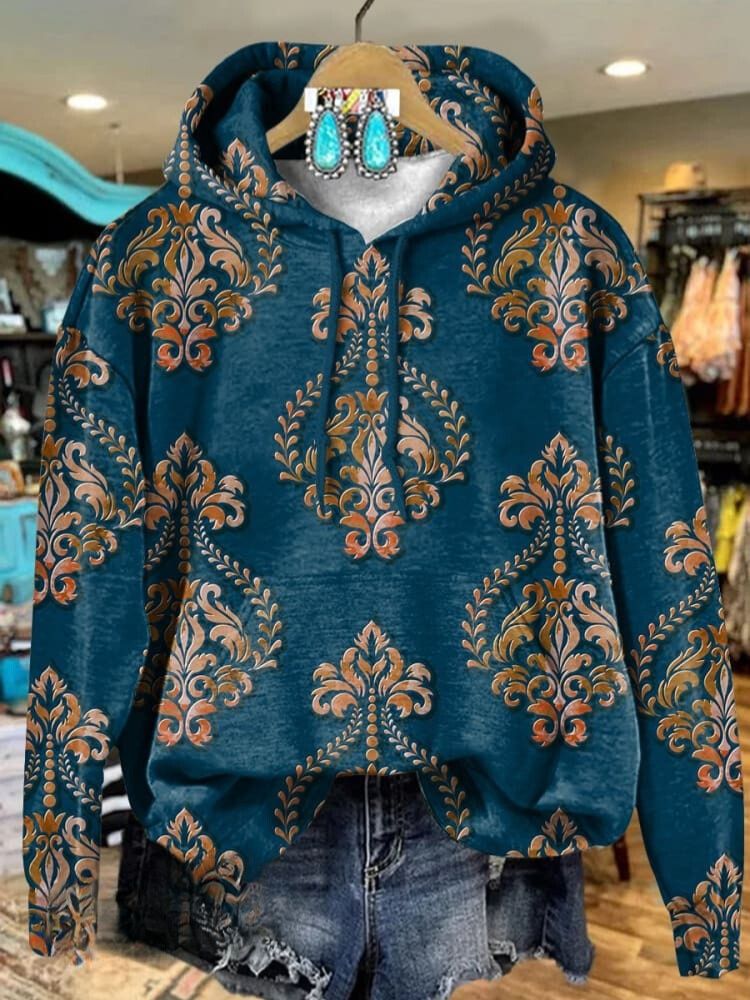 Retro Dark Blue Ethnic Pattern Art Print Casual Hoodie Sweatshirt