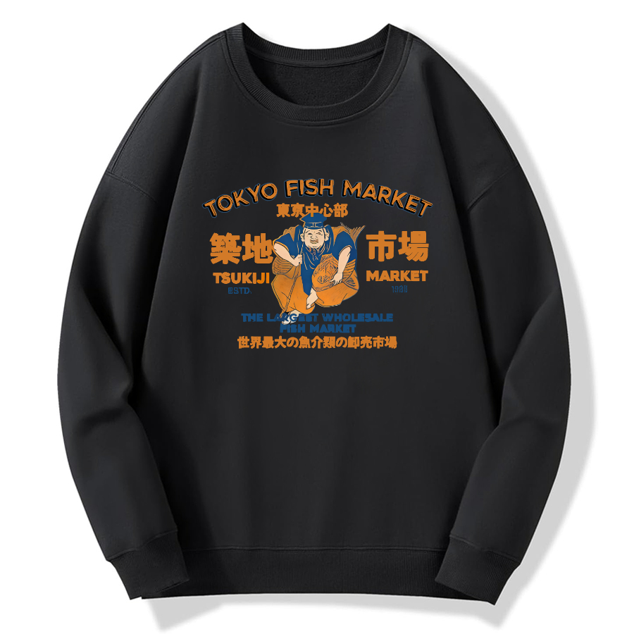 Tokyo Tsukiji Market Cotton Pullover Sweatshirt