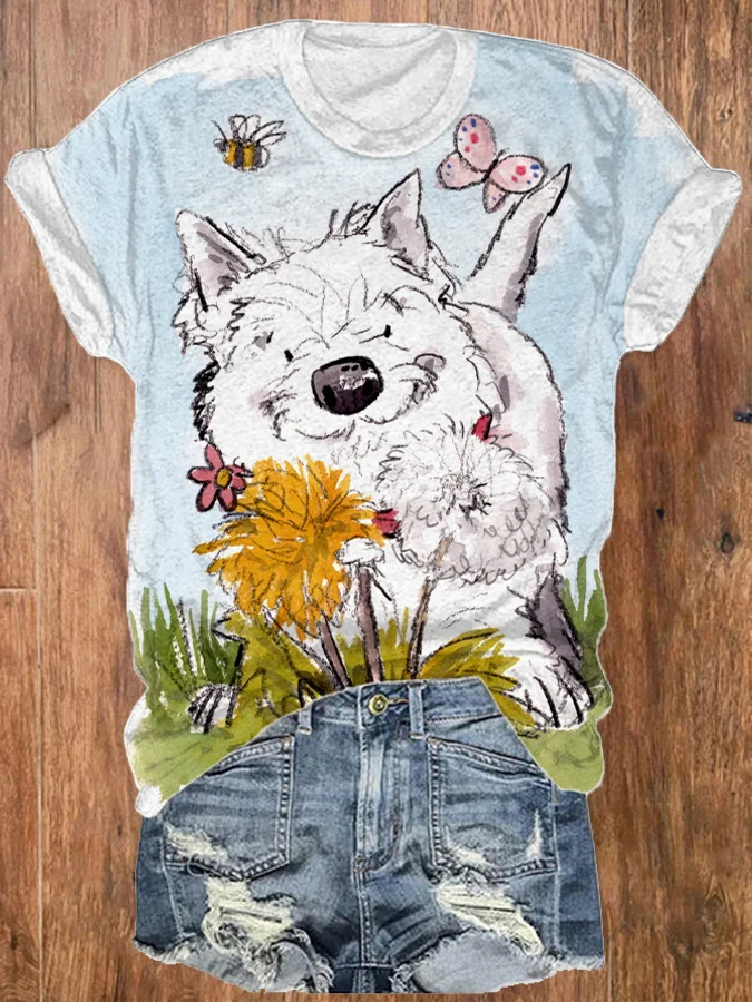 Women's Vintage Animal Flower Art Print Casual V-neck Shirt
