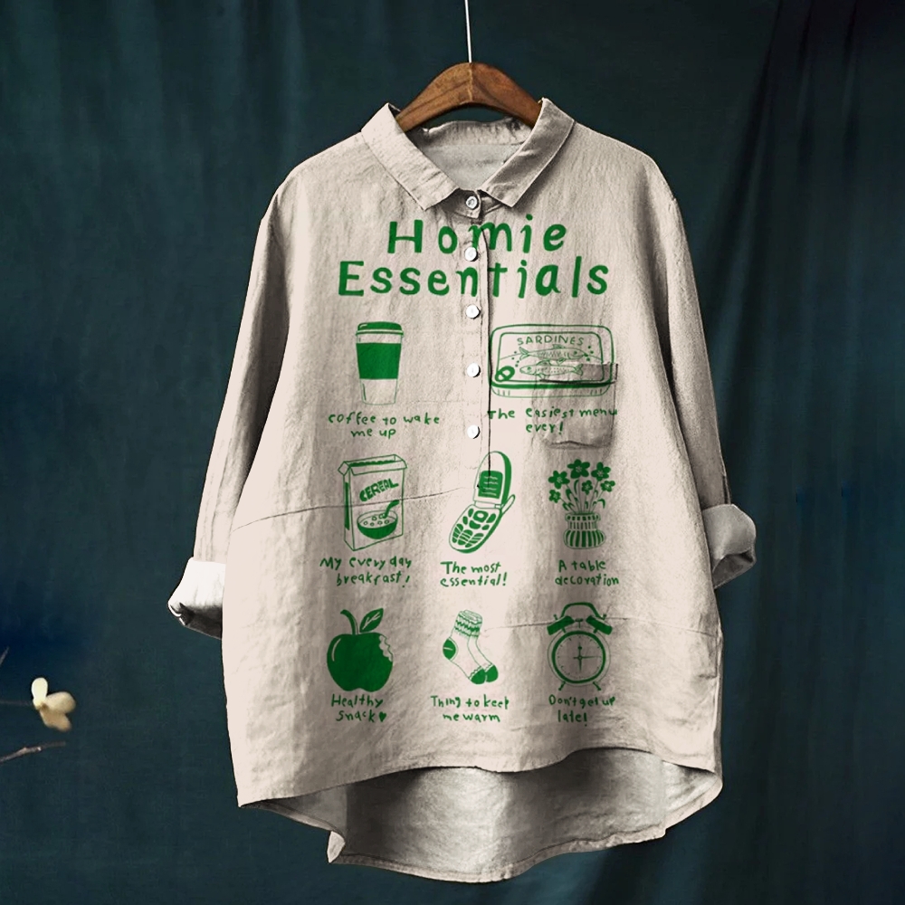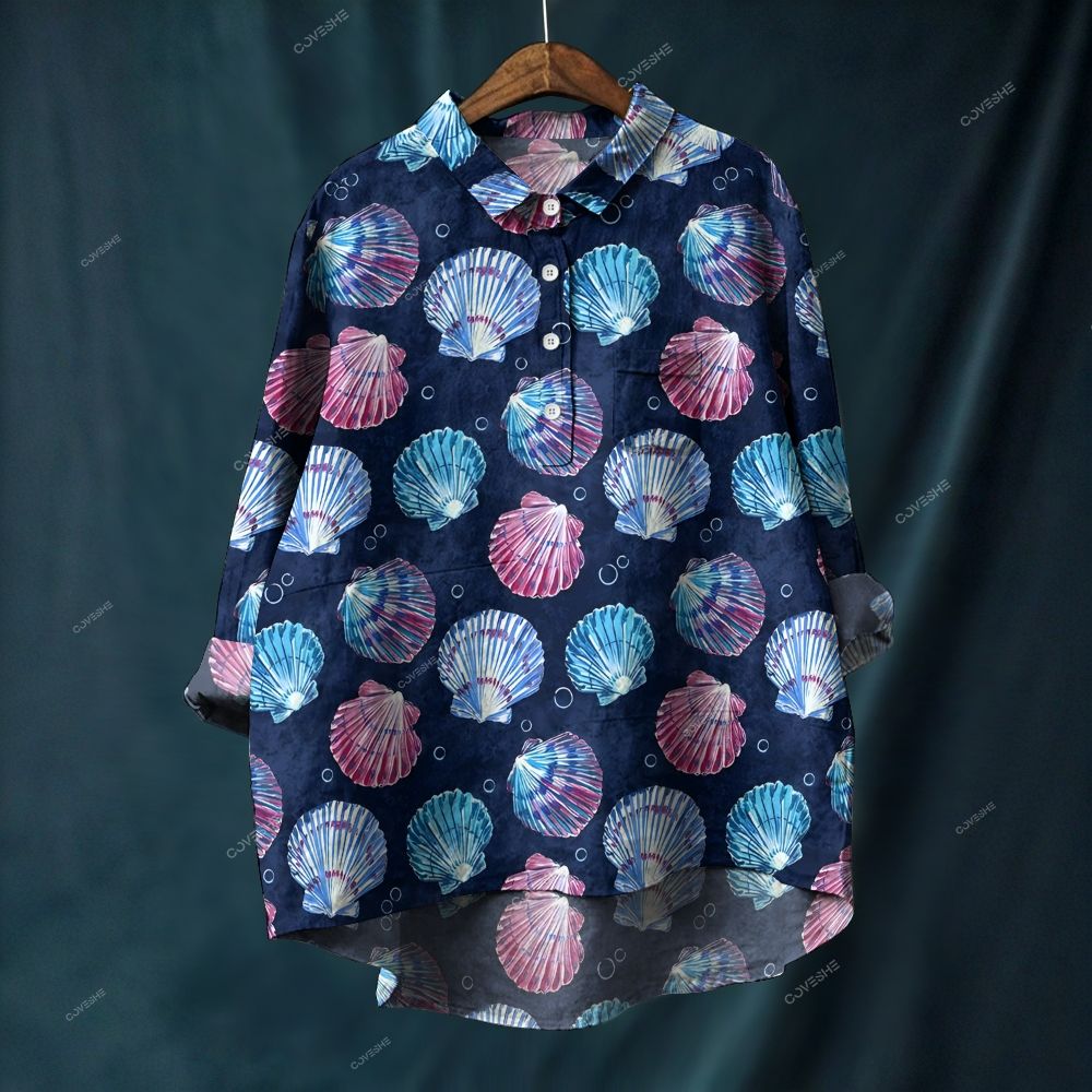 Women's Colored Shell Printed Casual Long Sleeve Shirt