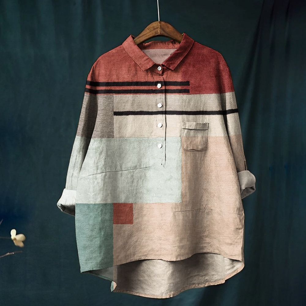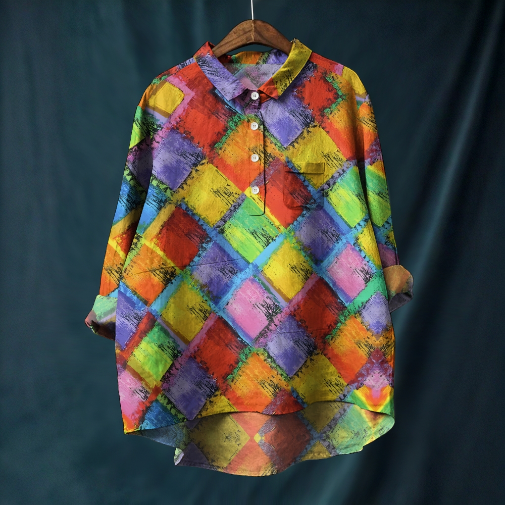 Women's Colorful Geometric Square Printed Casual Long Sleeve Shirt