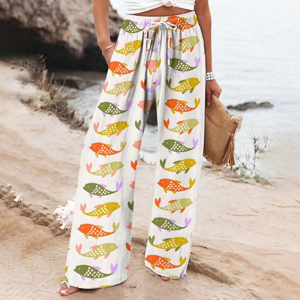 Women's Wide Leg Casual Colorful Cartoon Koi Printed Pants