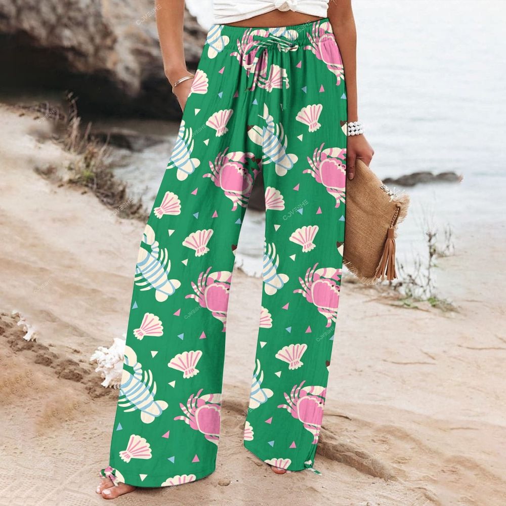 Women's Wide Leg Casual Cartoon Crab Lobster Printed Pants