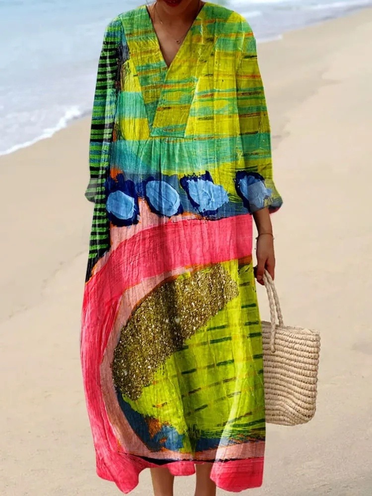 Women's Colorful Abstract Geometric Lines Printed Maxi Dress