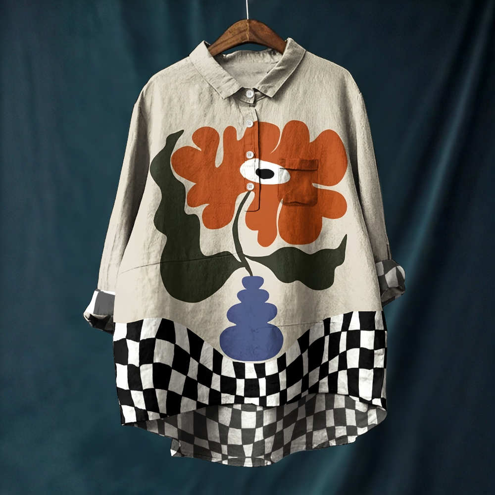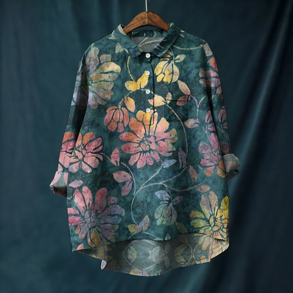 Women's Vintage Flower Art Printed Casual Long Sleeve Shirt