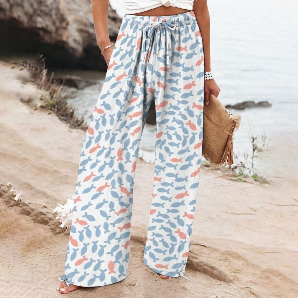 Women's Wide Leg Casual Colorful Fish Printed Pants
