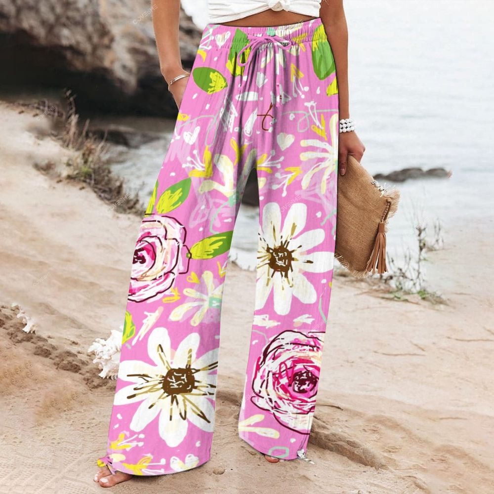 Women's Wide Leg Casual Flowers Printed Pants