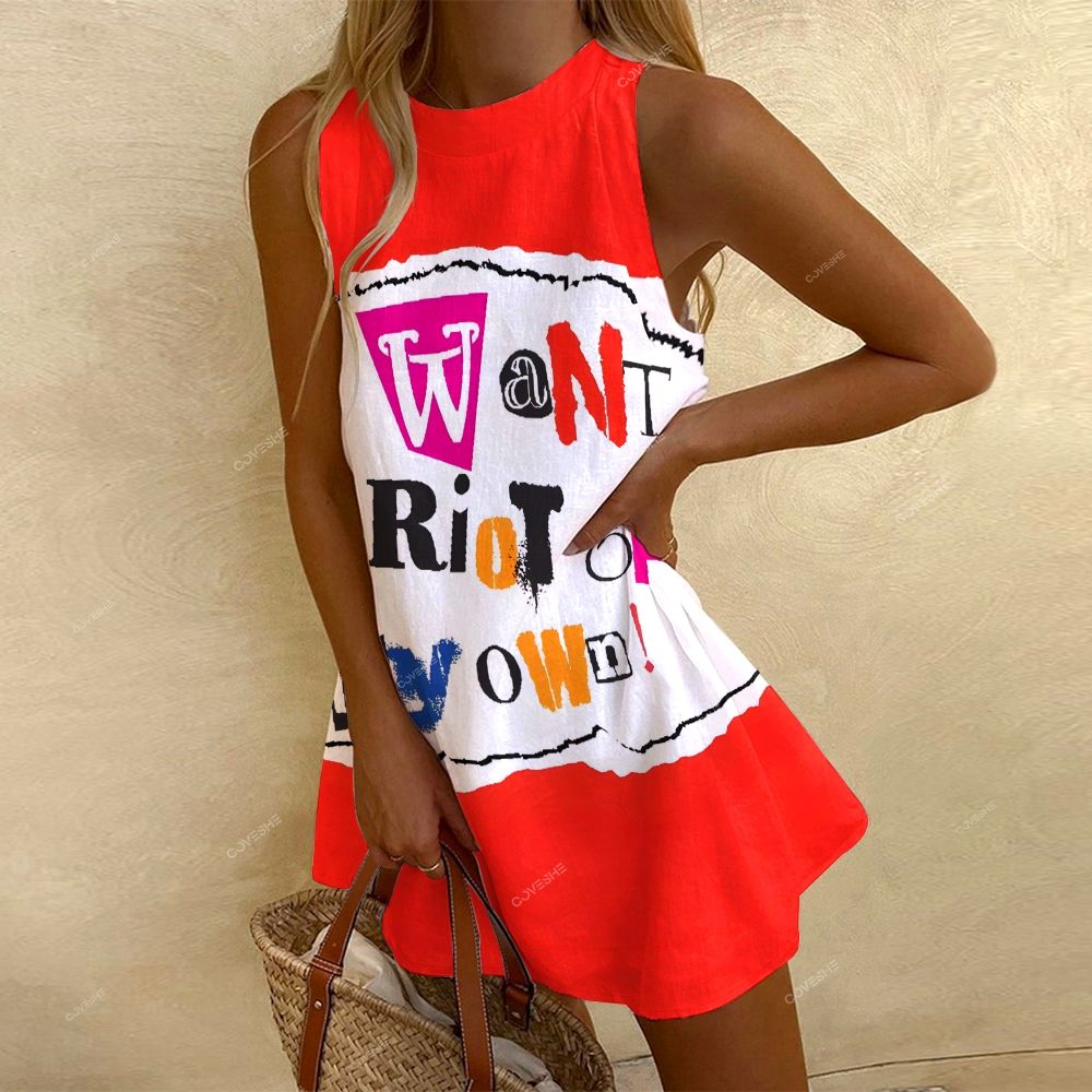 Women's Sleeveless I Want A Riot Of My Own Printed Dress