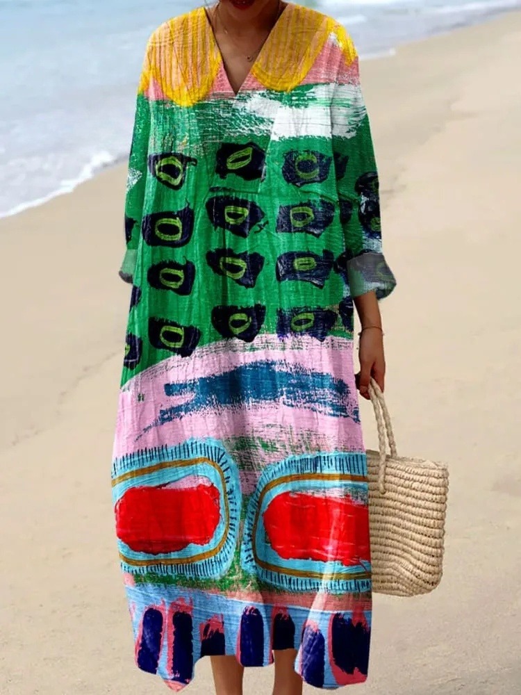 Women's Vintage Abstract Geometric Color Block Art Print Dress