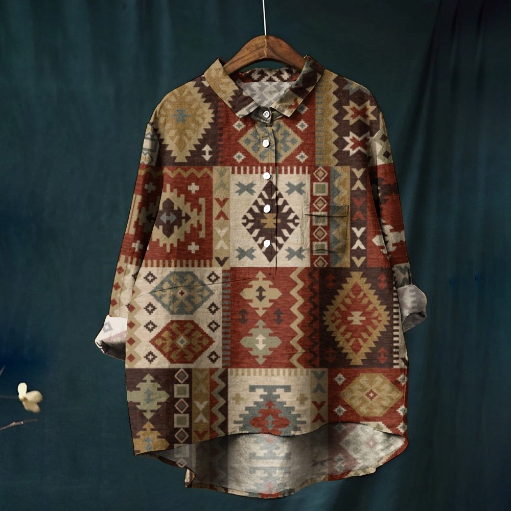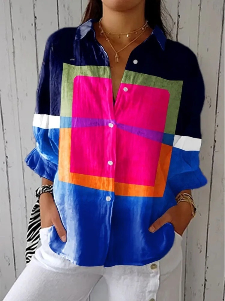 Women's Geometric Patchwork Printed Casual Long Sleeve Shirt