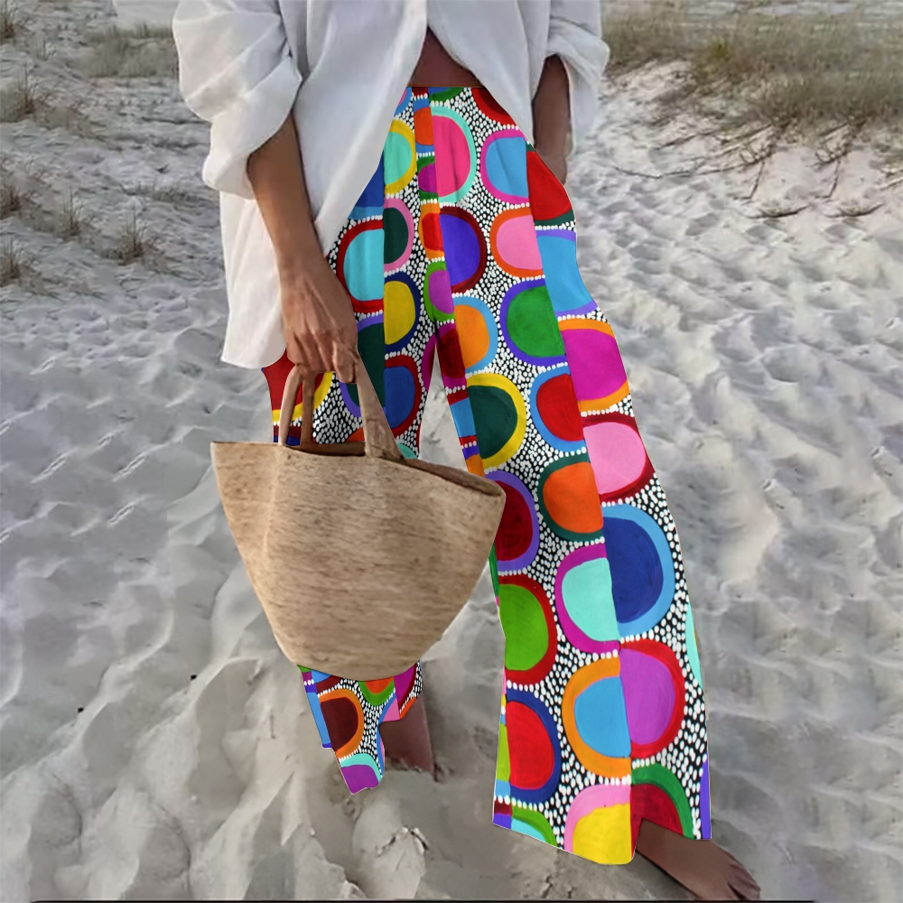 Women's Colorful Semicircle Polka Dots Printed Casual Loose Pants