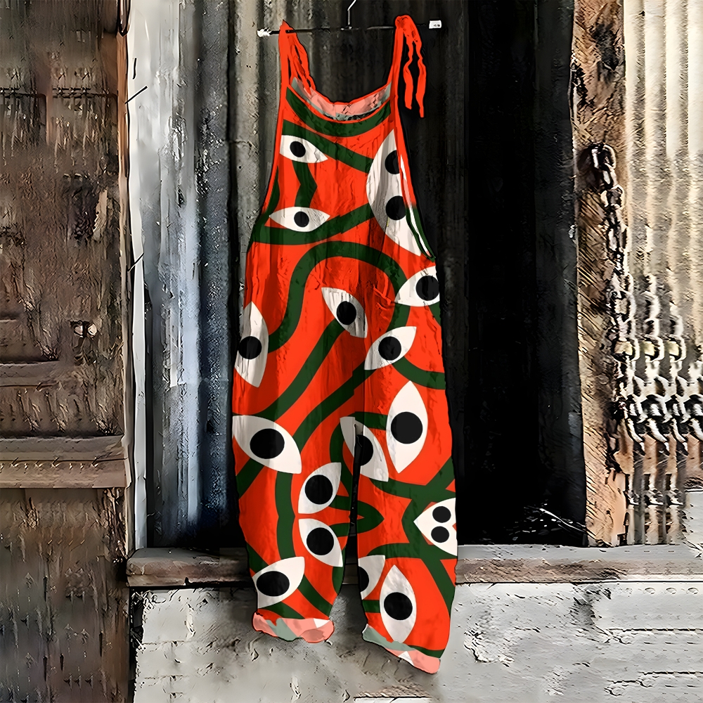 Women's Vintage Flower Art Print Casual 100% Cotton Wide Leg Jumpsuit