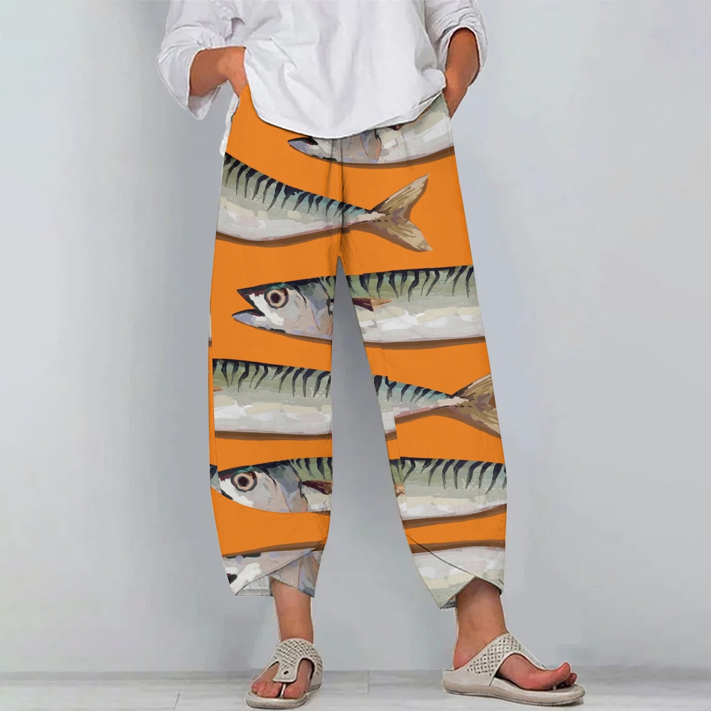 Women's Fish Vintage Art Print Sleeveless Cotton Pocket Wrap Dress