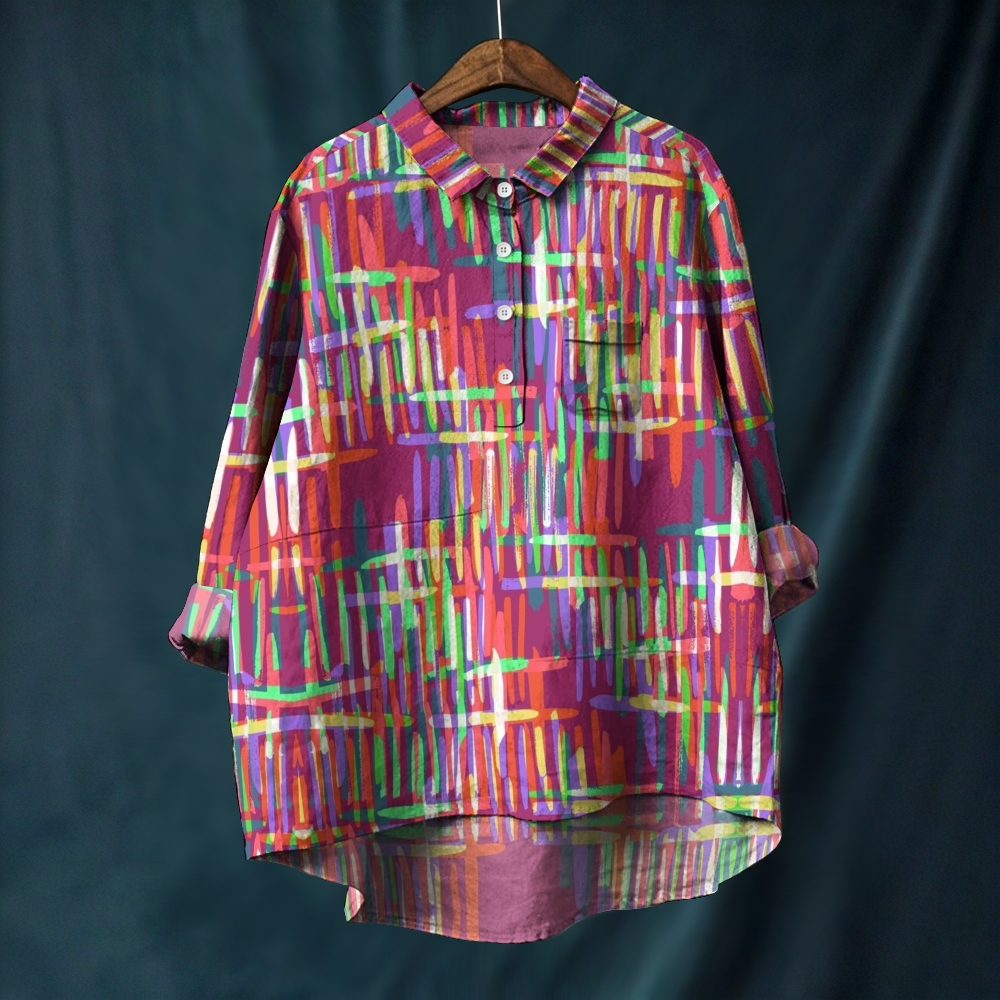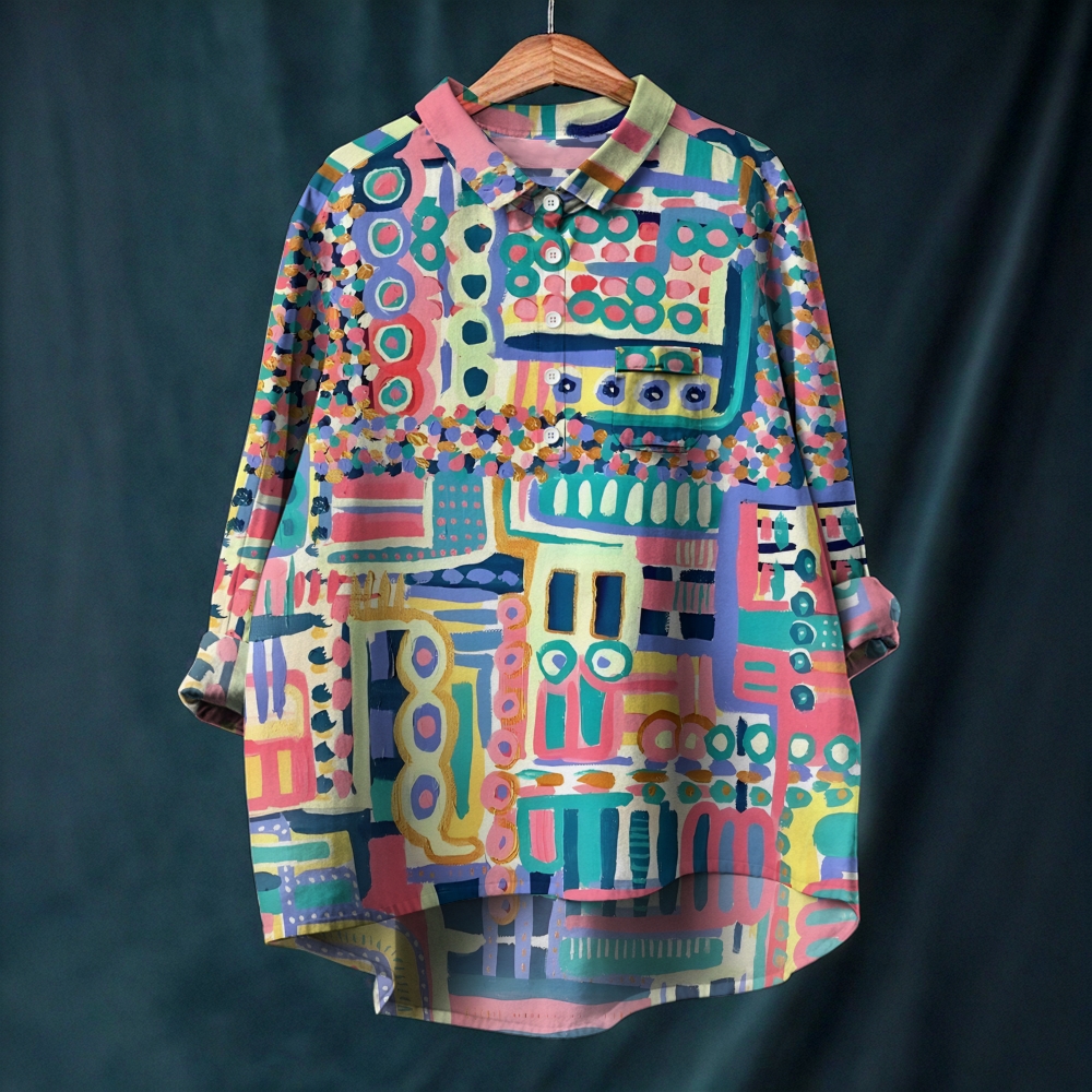 Women's Abstract Art Geometry Printed Long Sleeve Casual Shirt