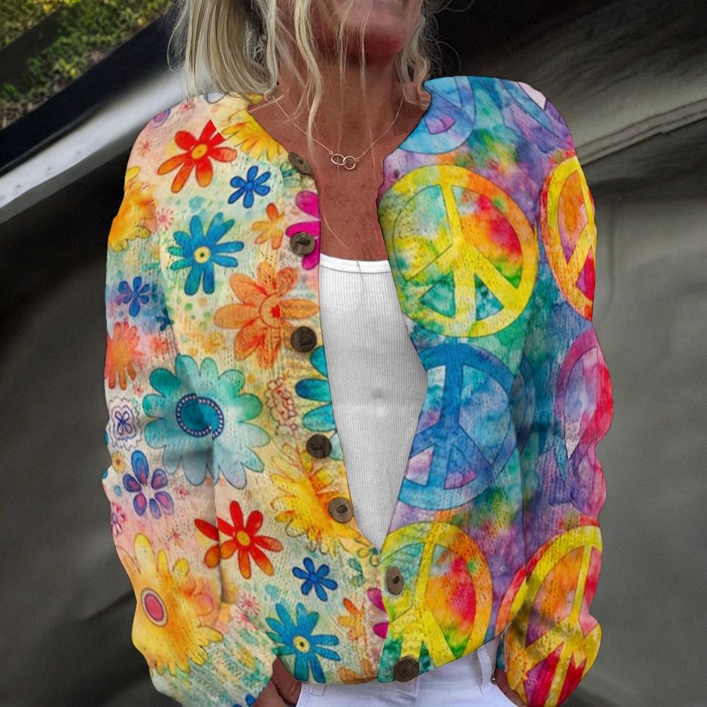 Women's Vintage Flower Art Printed Casual Long Sleeve Shirt