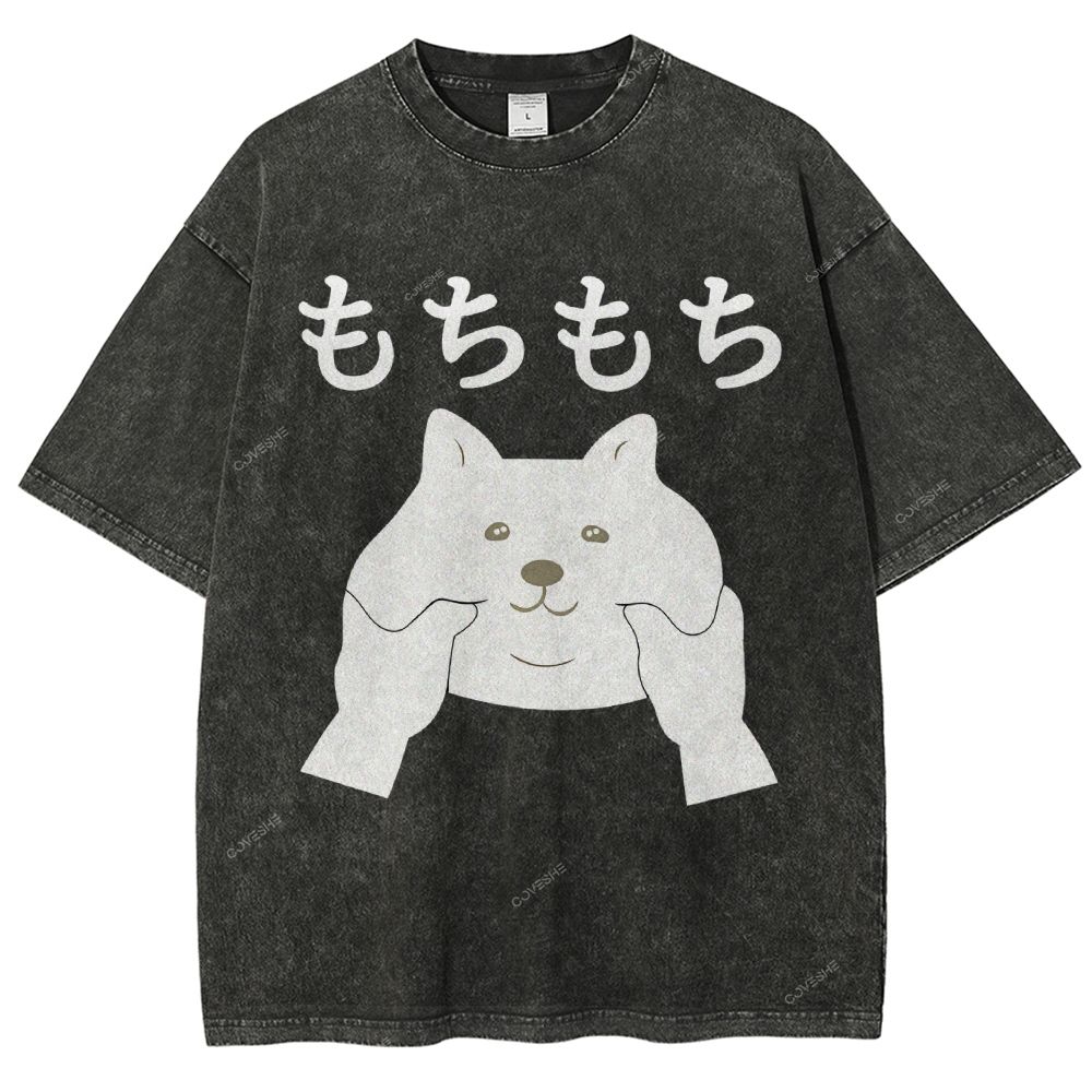 Men's Stand Collar Retro Abstract Cat Printed Short Sleeve Shirt