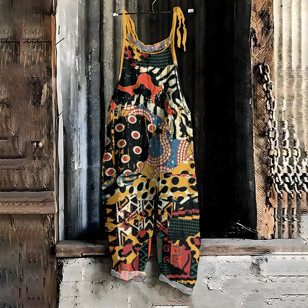 Women's Casual Geometric Splicing Printed Jumpsuit