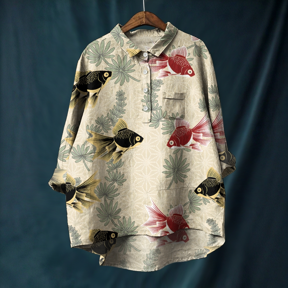 Women's Vintage Fish Printed Casual Long Sleeve Shirt