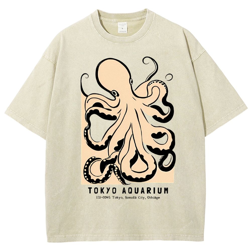 Japanese Style Ink Octopus Vintage Seal Print V-neck T-shirt