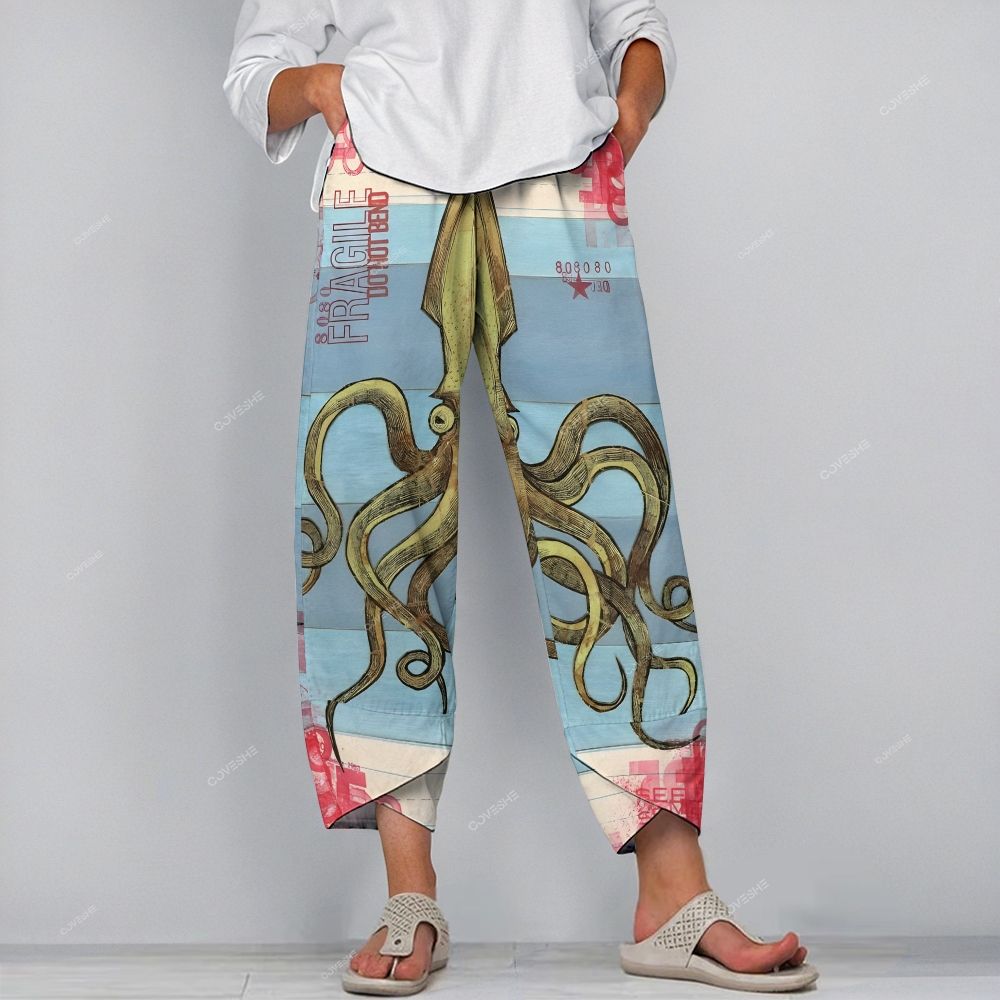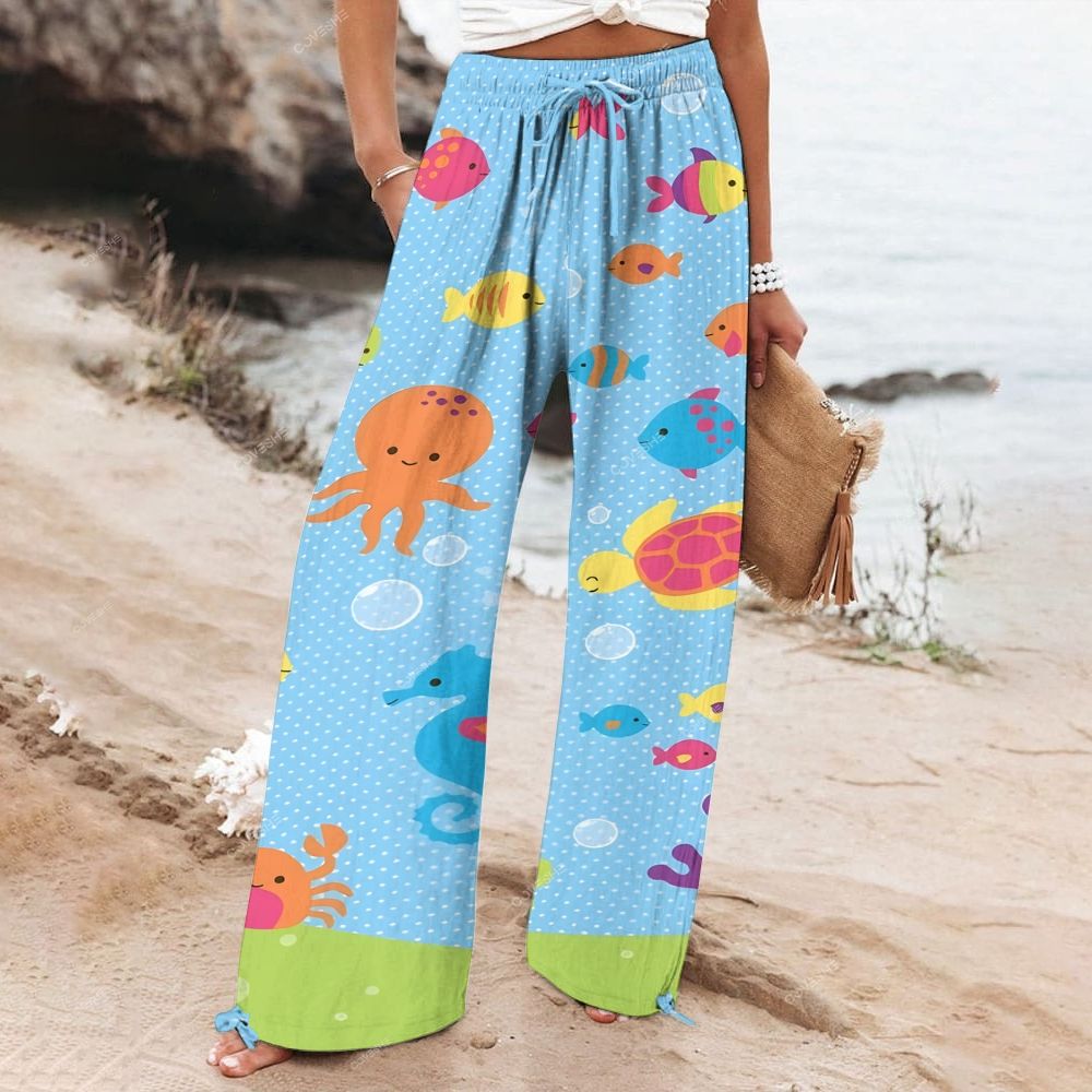 Women's Wide Leg Casual Colorful Cartoon Fish Octopus Printed Pants