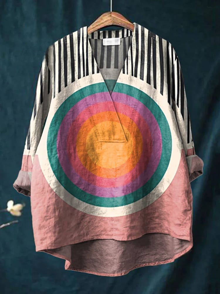 Women's Gradient Circle Geometry Print Casual V-neck Shirt