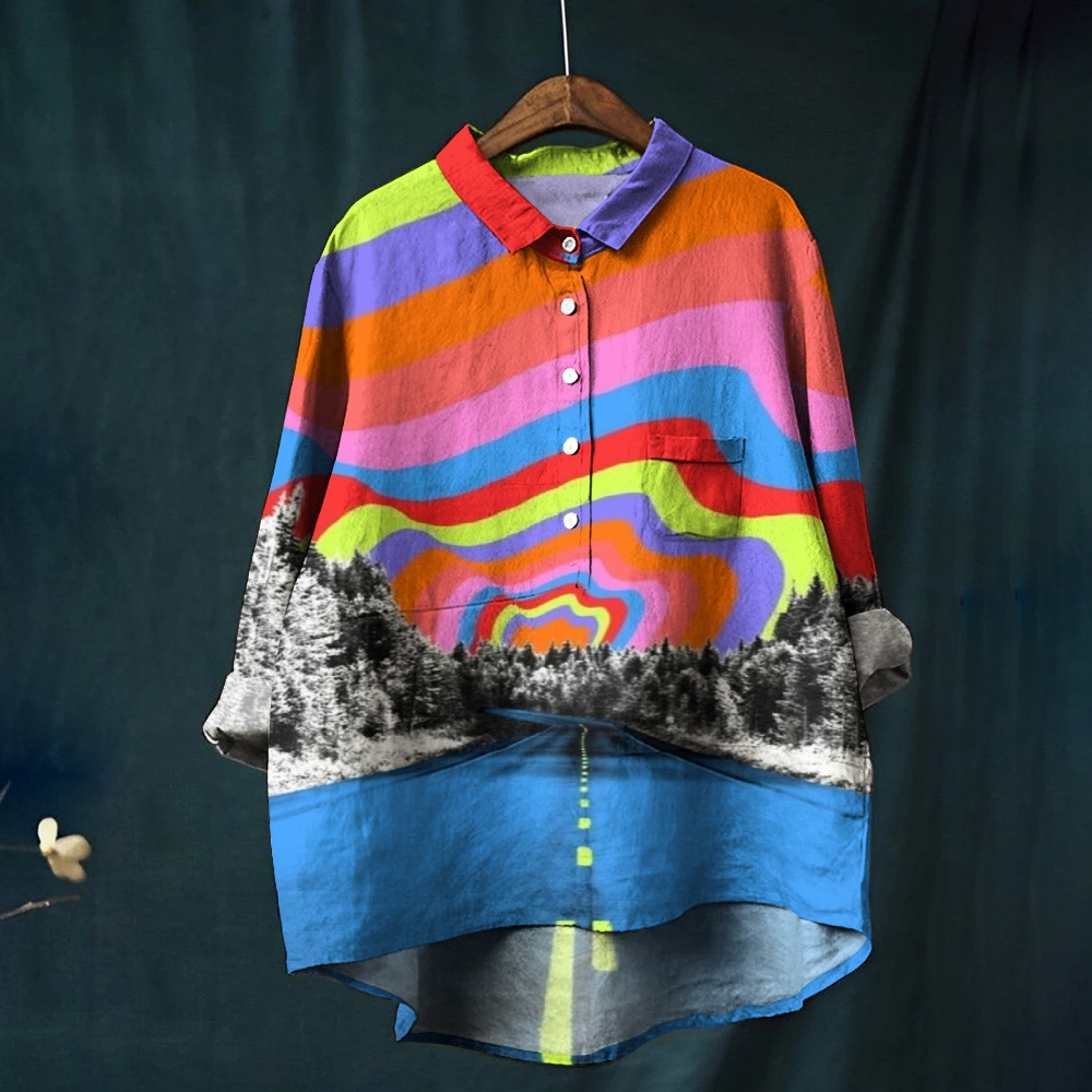 Women's Colorful Striped Sky Highway Printed Casual Shirt