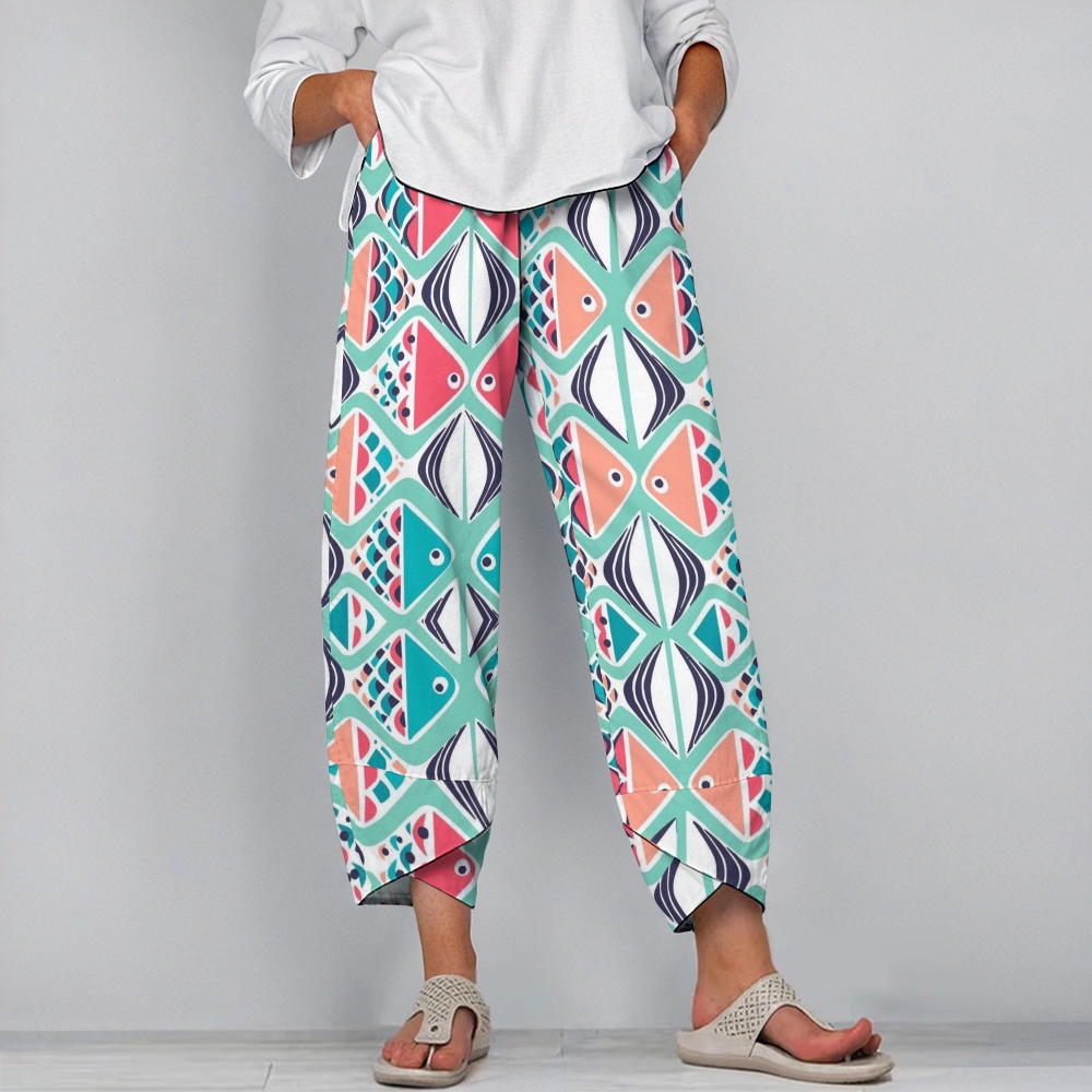 Women's Casual Colorful Geometric Fish Printed Pants