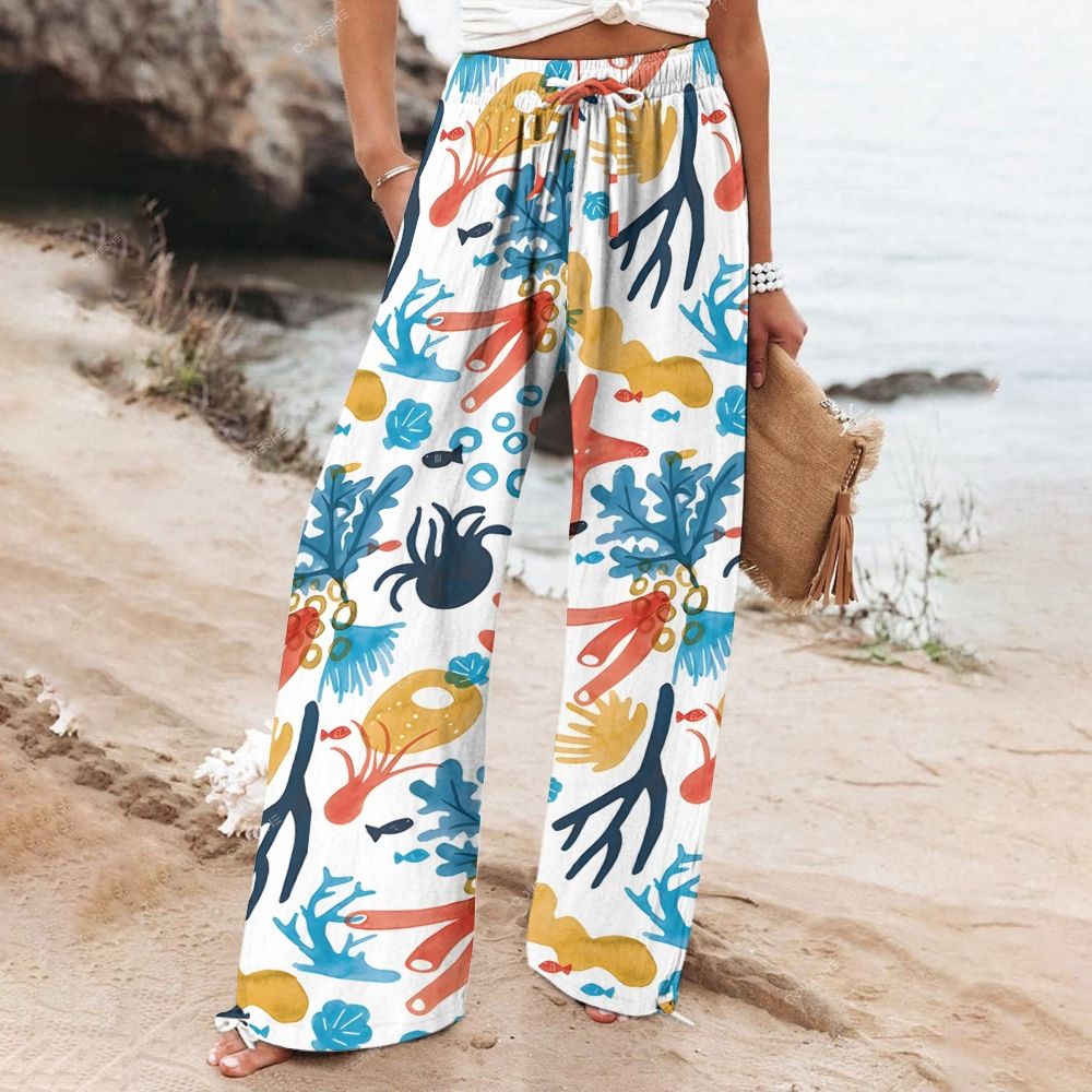 Women's Wide Leg Casual Cartoon Coral Crab Printed Pants