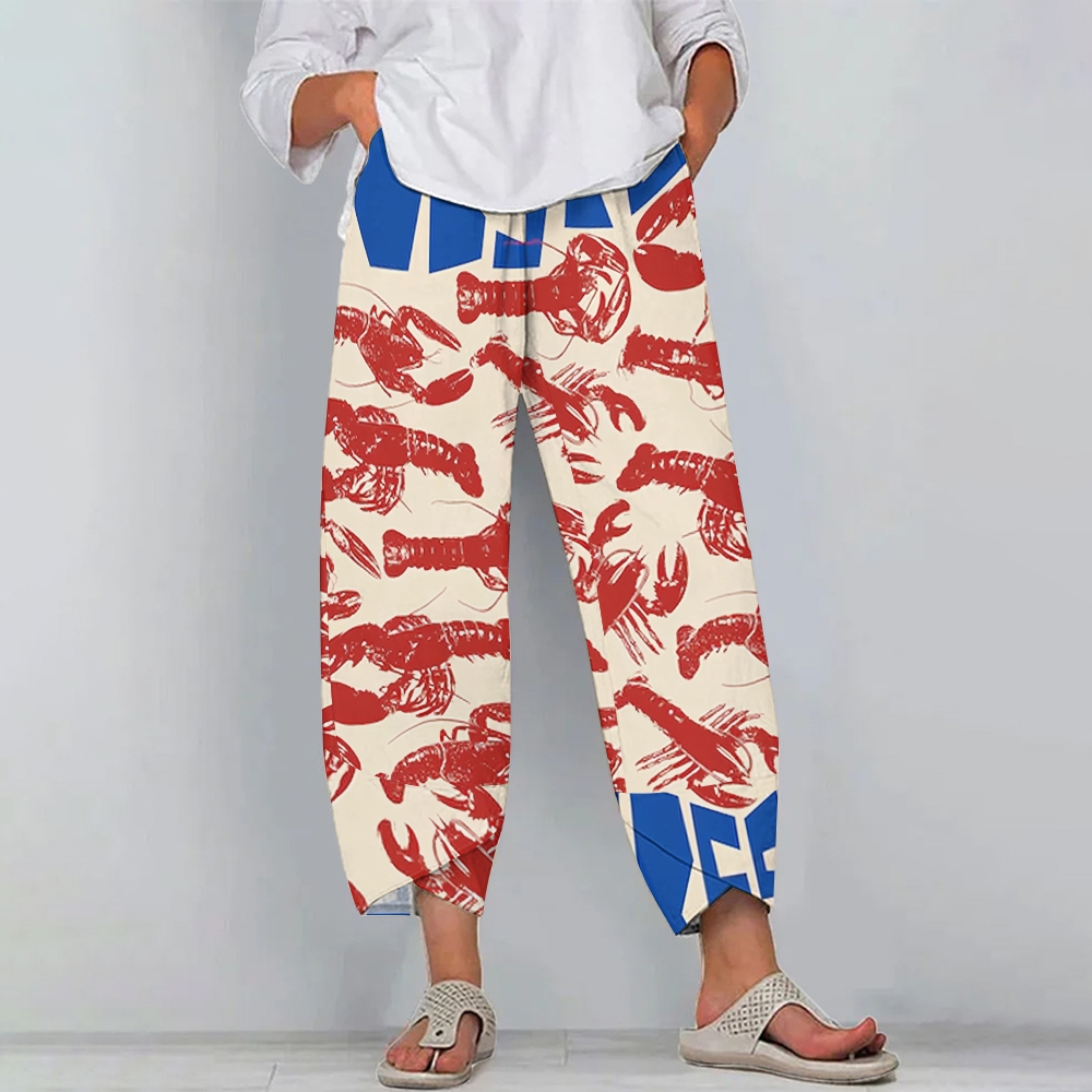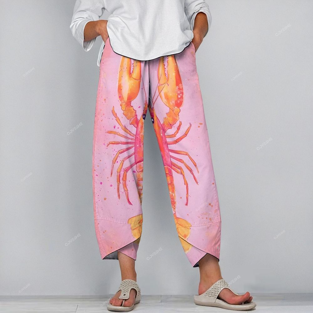 Women's Casual Pink Cartoon Lobster Printed Pants