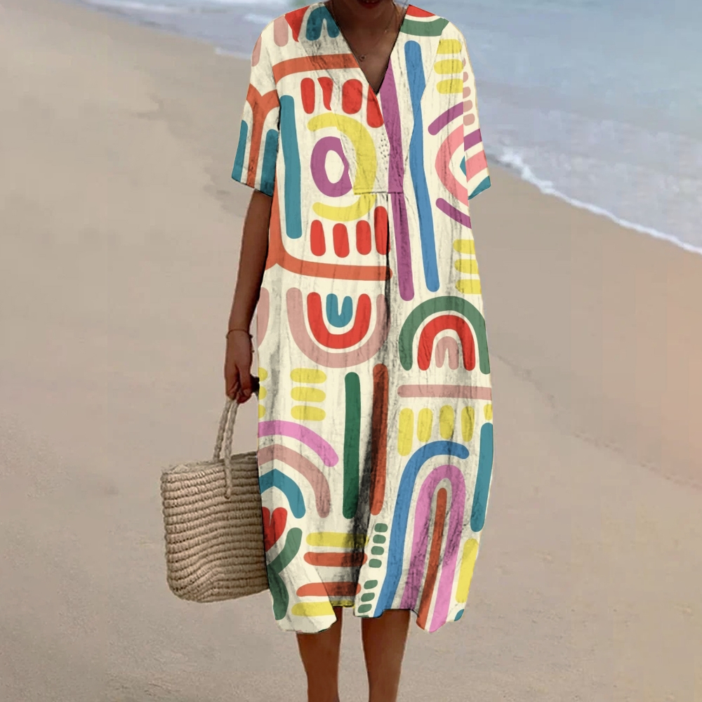 Women's Lovely Floral Pattern Art Print Cotton Dress