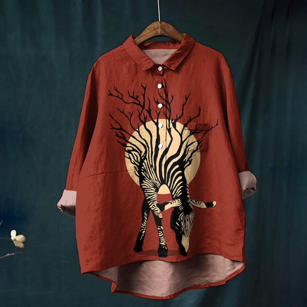 Vintage Zebra Print Shirt & Pants Two-piece Set