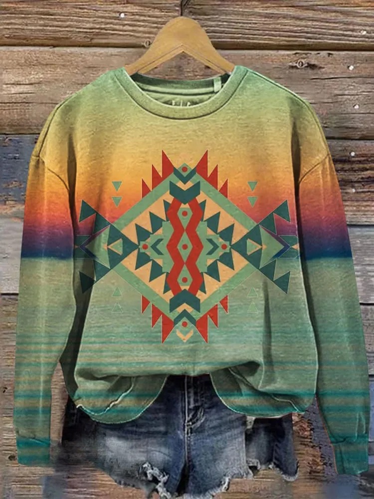 Women's Colorful Geometry Printed Casual Long Sleeve Shirt