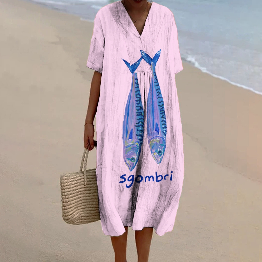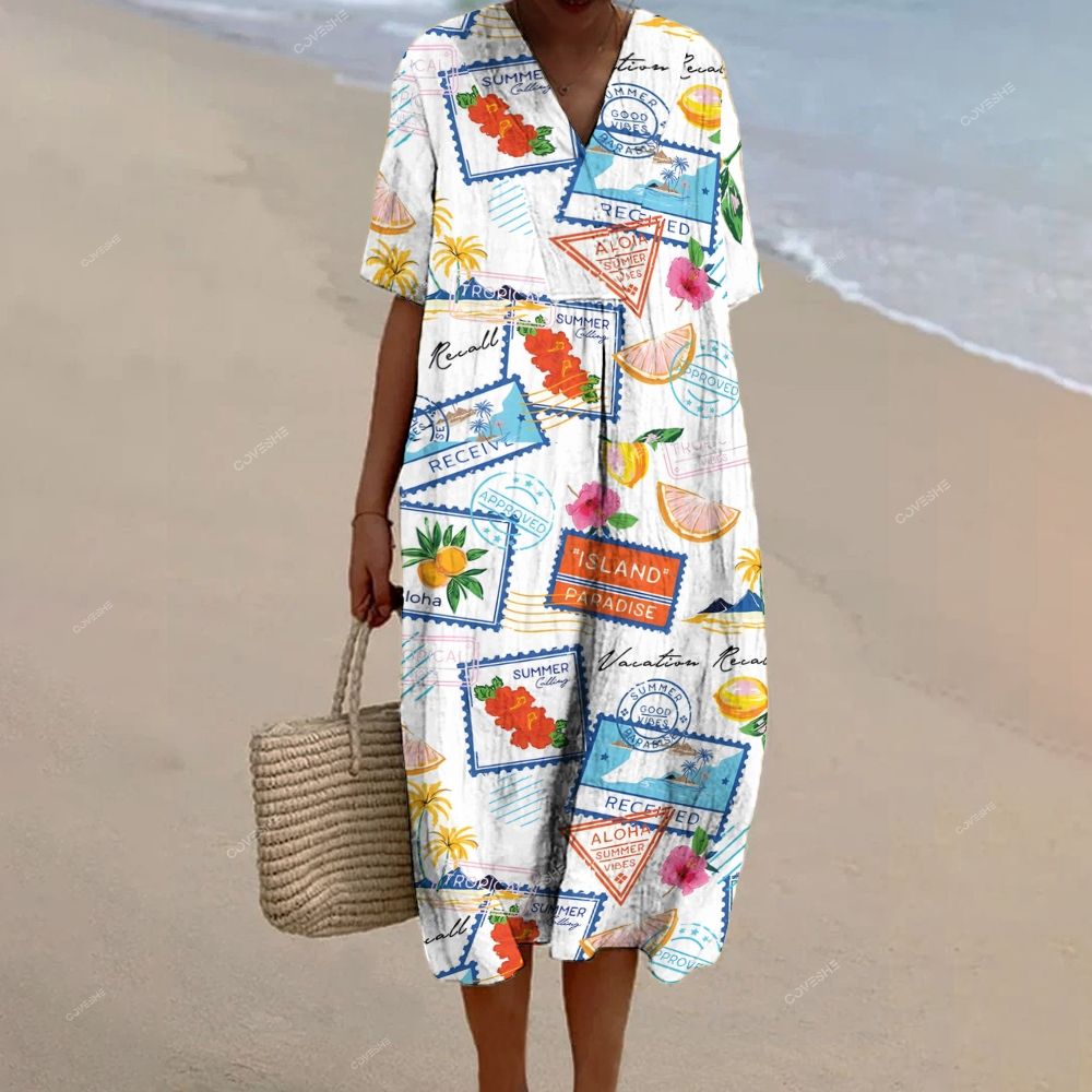 Women's Flower Fruit Stamp Printed Flowy Dress