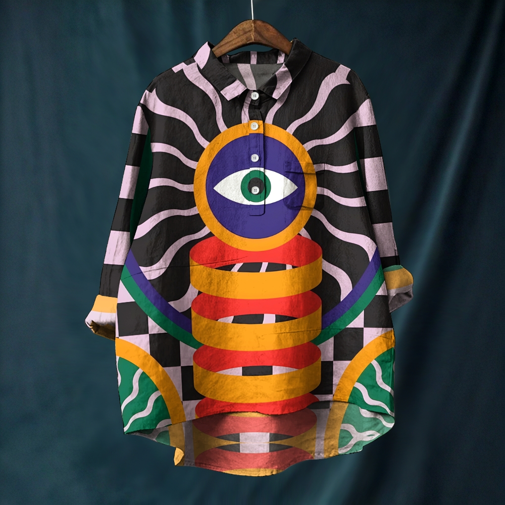 Women's Geometric Abstract Eyes Printed Casual Long Sleeve Shirt