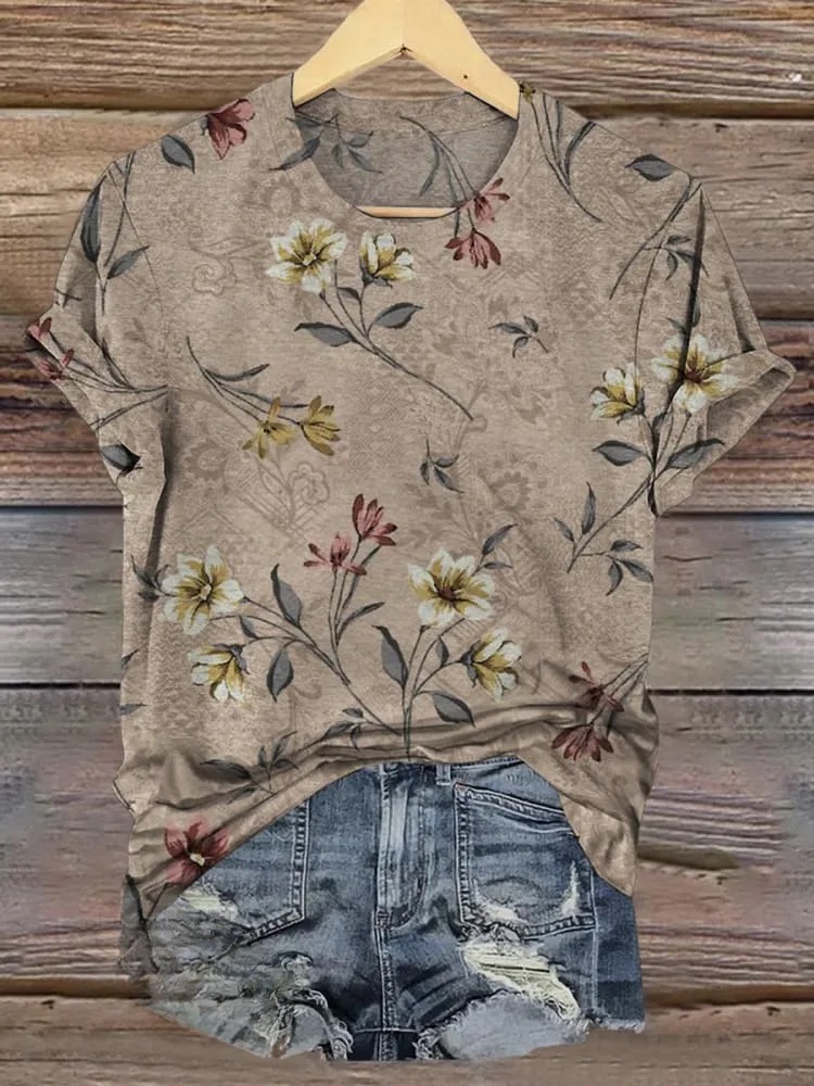 Women's Casual Mid Sleeve Vintage Lovely Floral Art Print Shirt