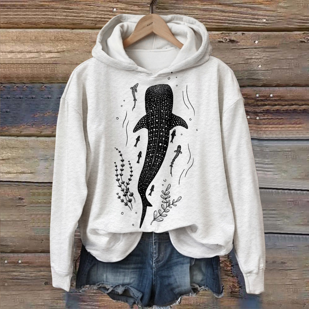 Whale Shark Seaweed Print Women's Casual Hoodie