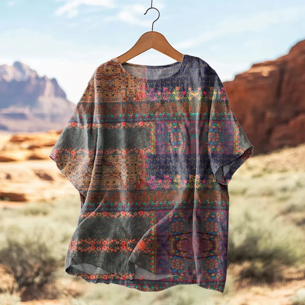 Women's Vintage Psychedelic Collage Sunflower Retro Hippie Art Pattern Art Print Casual 3/4 Sleeve Shirt