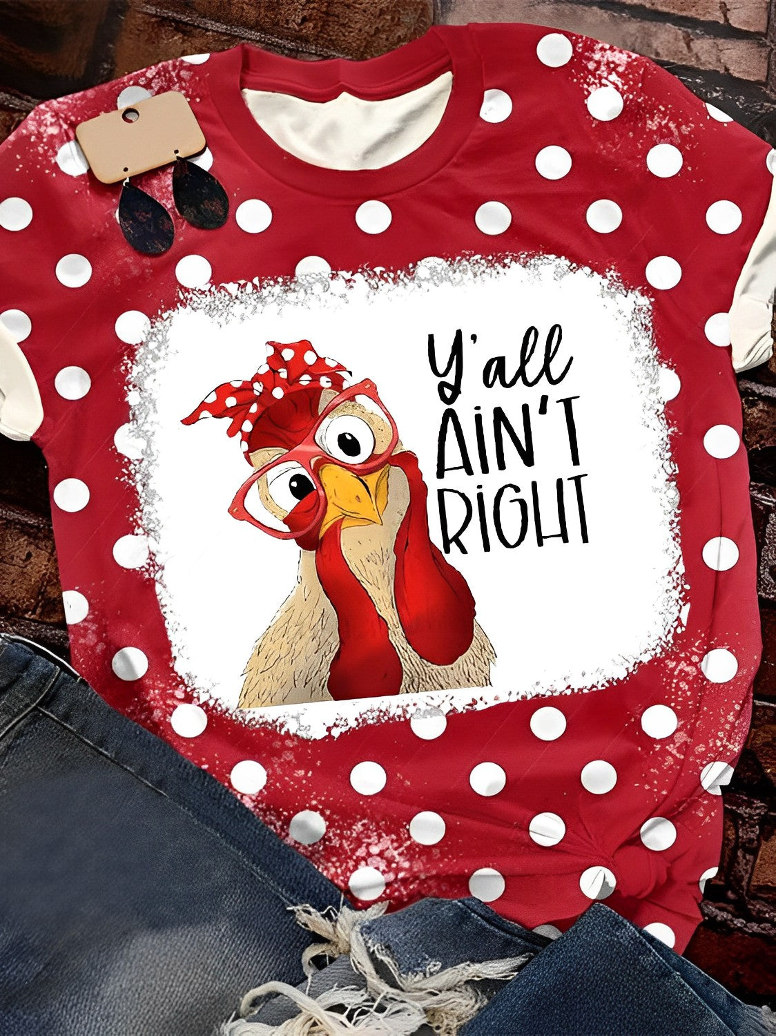 Yall Aint Right, Funny Chicken Print Crew Neck T-Shirt